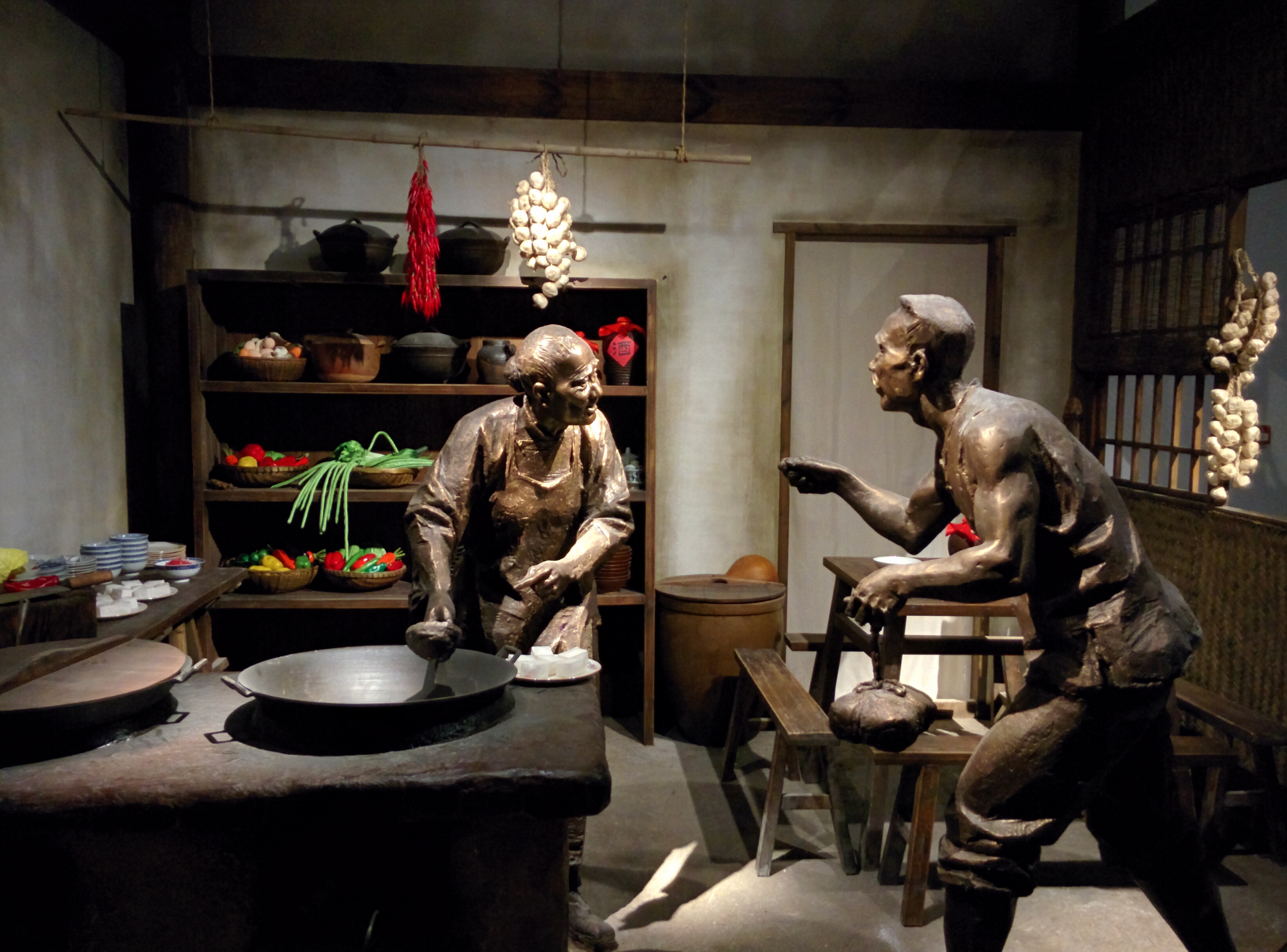 A sculpture depicting the process of making Mapo Tofu, a very popular dish from Sichuan